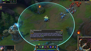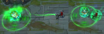 *首次施法的治疗效果会为娑娜和周围生命值最低的队友治疗25/50/75/100/125+0.25法术强度的生命值,目前每损失1%的生命值,这个治疗的效果就会提升1%