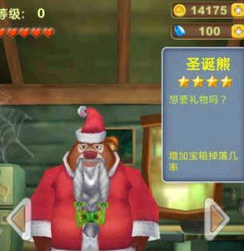 特色:圣诞熊能够帮助你在游戏中增加宝箱掉落几率,还是很不错的。