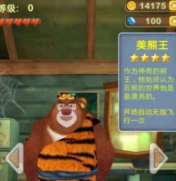 特色:游戏中的美熊王作为神奇熊王,他始终认为在熊的世界他是最漂亮的。他的特殊技能是在开场时会自动无敌飞行一次。