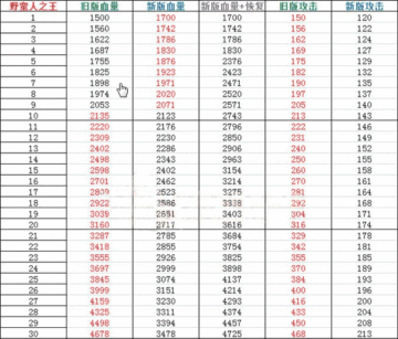 1、表格中红色的数字,代表新旧对比中数值较高的一方。