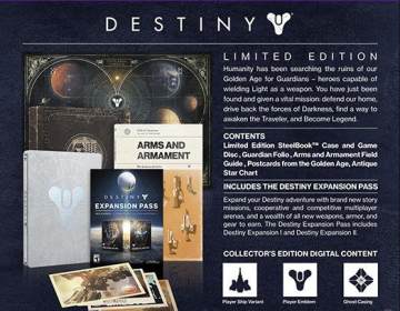 本次《命运》推出了三个版本供玩家选择:数字守护者版、幽灵典藏版、限量典藏版。其中幽灵典藏版和限量典藏版都包含如下奖励: