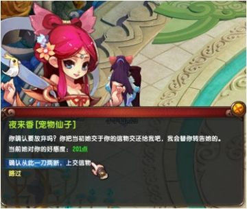 玩家可以右击信物了解当前好感度,或者在夜来香处查询好感度情况,在不同阶段进行断交,就可以获得不同阶段的物品了,
