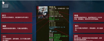 【神通】:类似于人物的属性点,可通过道具洗练;