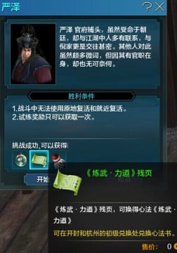 收集10张《练武·力道》残片可在杭州初级兑换处(1643.633)换取一部心法《练武·力道》。