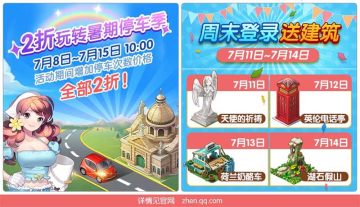 活动规则:小镇周末活动欢乐不停,活动期间,玩家每日登录游戏都有惊喜建筑送出,暑假周末收好礼。