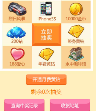 4.黄钻礼包会即时发放给用户,请用户在获得后去QQ空间查看自己的QQ号码身份;游戏礼包请重新登录游戏后在游戏邮箱中查收,实物奖励,将在活动结束后2个月内安排发放奖励.如因个人资料不完整导致无法发奖,损失将由用户自行承担,免费邮寄仅限大陆地区用户。