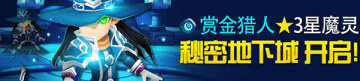 7月11日到7月17日,魔灵召唤游戏中,[、赏金猎人秘密地下城开启!玩家可以收集掉落的召唤书碎片,召唤水属性三星赏金猎人!