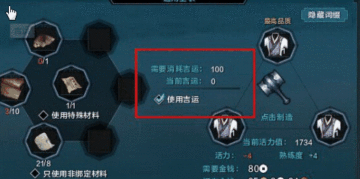 再来说说如何获得吉运?玩家在制造50级以上装备时候,每制造一件装备都会随机在1到3吉运之间获得一个随机值。随着玩家制造装备数量的越来越多,吉运也会慢慢的增加。