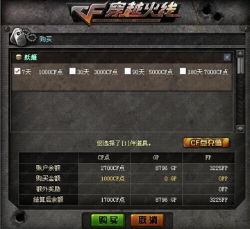 1000CF点7天、3000CF点30天、5000CF点90天、7000CF点180天