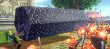 《塞尔达无双》最近公布全新要素,林克和塞尔达公主的新武器曝光,其中林克的第三种武器力量之钢腕,可以让林克使用巨大流星锤和石柱等重型武器攻击敌人。而塞尔达公主则可以用音乐指挥棒一般的细剑御风作战。场地中的道具箱内不仅能获得心之容器用来提升体力上限,还可以取得弓一类的攻击型道具。