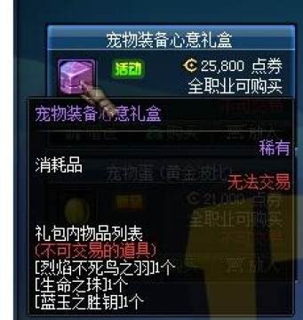宠物装备礼盒售价为25800点卷(全职业均可购买)