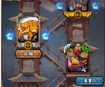 很多哥哥都知道龙头49层的那三只老虎不好惹,攻高血厚而且配合前排两只反击猪,很多哥哥都团灭在这五只野兽的利爪之下。在此小编推荐一下哥哥们注意一下对面野兽的五行属性。如图所示,后排两只猛虎的属性是火,中间的是土,前排两只野猪分别是木和土。因此如果没有直接秒后排的武将只能快速清掉前排的话,可以根据武将属性向克制来组建。