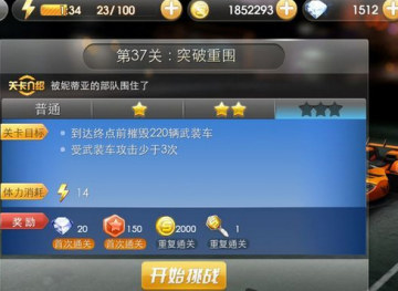 在天天飞车游戏中,闯关模式第37关突破重围还是有一定难度的,这里给大家分享下这关三星通关的技巧。