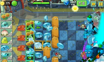 这一关后期的压力十分之大,大家一定要注意机甲橄榄球僵尸的位置,并且立即使用脉冲将其锁定,不然会十分难办。钥匙僵尸的数量太多,就给冰西瓜使用能量豆就好了。