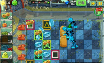 除了阳光之外,本关的能量豆消耗也是很多,能量花CD好了后立刻使用。阳关的数量多起来了之后就开始种冰西瓜和高坚果。