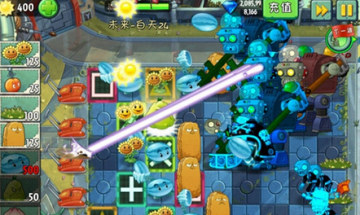 中期会出现巨人僵尸以及机甲橄榄球僵尸这种大型僵尸,直接使用脉冲黄桃来解决战斗。