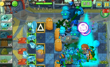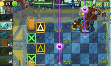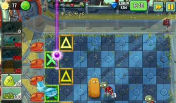 这一关我们是无法选择阳光的,不过天上掉落的阳光很多。另外有一点大家要十分的注意,阳光才出现的时候是紫色的,这个时候点击阳光会发生爆炸,只有等到阳光落地变成黄色点击才能收获。开始的时候我们先使用冰冻生菜来拖住僵尸以便获得更多的阳光。等到阳光多起来之后就要开始种植高坚果和冰西瓜。