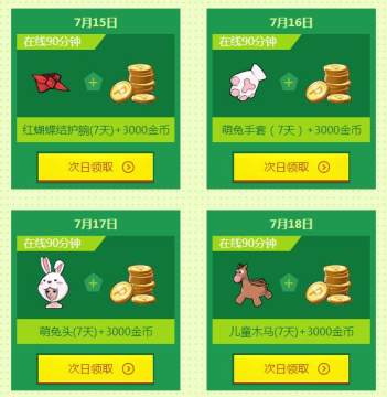 不仅如此,7月15—7月18日,每日累计在线也有豪华放送,每日奖励!