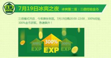7月19日晚20:00——22:00,全服开启300%经验金币,畅玩走起!