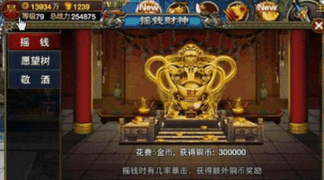 新区开启后数天内,玩家参与“摇钱”达到指定次数后,将在第二日得到对应的金币返还!并且还有海量体力同时放送噢!摇满次数越多,奖励越多!(小贴士:完成12级主线任务即可开启摇钱财神~噢啦啦~\(≧▽≦)/~)