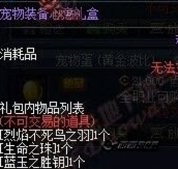 打开礼盒后可以获得,烈焰不死鸟之羽一个,生命之珠1个,蓝玉之胜匙1个(均不可交易)
