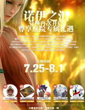 活动说明:诺伊之泪兑换限量周边.专属AGE公仔、限量怀表、典藏主题曲CD、官网积分等礼品等你来拿!