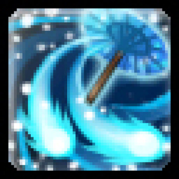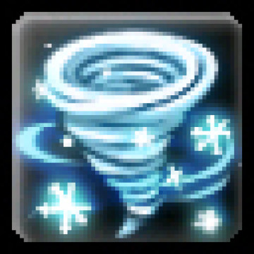 凋零飞雪:雪姬压缩冰雪元素将之化为剧烈旋转的飞雪,射向目标造成冰雪伤害并附加持续伤害的效果。