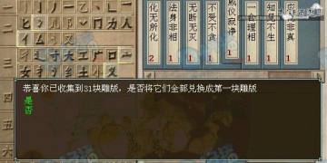 31块版齐了就会跳出这个。这里我提一点个人建议:刻完30块后,第31块你可以先把笔画或上墨,但不要点上样!你继续使用其他经文,做完18次单人任务,赚多些墨点。如果你18次单人都完了,也别先急着点,先看你的墨点是否大于3点,最保险的点数,安全的话建议有10点左右,如果不够这个数的话,你最好先使用一本《净心》去杀boss,赚够墨点再回来刻完31块。