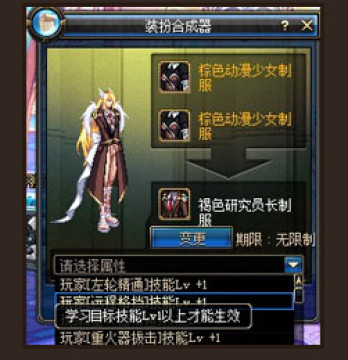 玩家可以下拉选择属性,如果合成出稀有装扮,则稀有装扮的属性为选择属性对应的稀有装扮的属性。