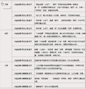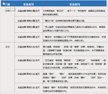 《剑网3》各门派技能附魔属性一览 来源: 飞翔小编 2014/7/21 11:38:31 浏览量:713 剑网3在今天维护后,推出了附魔一说,玩家登陆游戏即可前往信使处领取本门“兵鉴迷篇”,将此物附于武器之上,即可改变原有的招式效果。由于此类迷篇过于强大,仅限于在武林秘境、帮会领地及试炼之地内使用,具体效果如下: