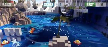 Fish and Shark《鱼和鲨》的画面由碧蓝的水和浮在水面上的立方体构成,水的周围是伫立在空中的虚幻的都市。游戏的画面也将实现白天和夜晚的变化,超有气氛。