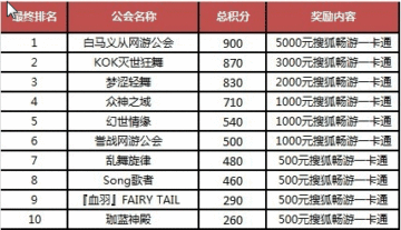 恭喜以上公会!奖励将在活动结束后的15个工作日之内发送至公会负责人邮箱中,请注意查收!