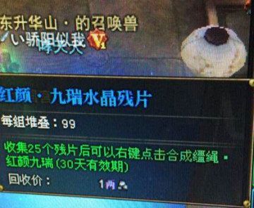 《斗战神》红颜九瑞水晶残片怎么得 红颜九瑞水晶残片作用介绍 来源: 飞翔小编 2014/7/24 9:04:26 浏览量:517 《斗战神》在今天7月24日版本更新后,可以获得新道具红颜九瑞水晶残片,红颜九瑞水晶残片怎么得,红颜九瑞水晶残片有什么用?这里给大家分享下《斗战神》红颜九瑞水晶残片的获得方法,以及作用效果介绍。红颜九瑞水晶残片怎么得?斗战神玩家在7月24日-27日连续四天21点15分游戏在线,即可获得红颜九瑞坐骑箱,打开必获得红颜九瑞水晶残片。红颜九瑞水晶残片有什么用?收集25个残片后可以右键点击合成缰绳红颜九瑞。