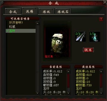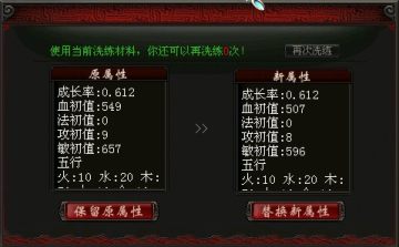 3、五常神兽初值洗练:兑换后初值随机,若对初值不满意,可以使用“五常碎片”洗初值。