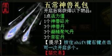 五常神兽初值洗练=五常神兽+1个神兽碎片+1个凝魂珠(中)