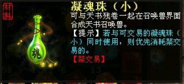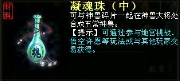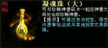 a、凝魂珠分为大、中、小,大可参与合成珍稀神兽,中可参与合成五常神兽,小可参与合成天书召唤兽。