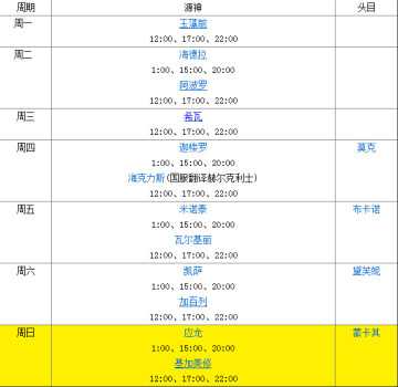 周二、周四、周五、周六、周日公会领地源神出现时间:1:00、12:00、15:00、17:00、22:00