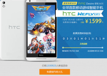 全民飞机大战主题手机HTC wefly光速预约活动介绍