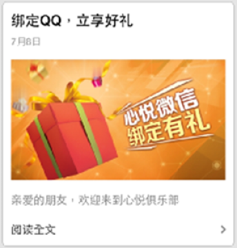 2. 打开服务号可以看到绑定QQ号的指引,点击阅读全文进入绑定QQ号流程,输入想要领取游戏礼包的QQ号码,注意绑定以后不能更改,一定要慎重选择适合的QQ号码进行绑定,便于后续礼包发放(要完成绑定,需要首先在微信-我-设置-帐号与安全-QQ号 中绑定QQ号码)