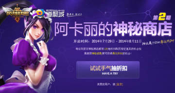 lol英雄联盟2014阿卡丽神秘商店第二期活动终于在今天7月29日开启,各位玩家在阿卡丽的神秘商店第2期活动中可以享受到抽取折扣的机会,这里给大家分享下lol阿卡丽神秘商店第二期活动介绍,以及神秘商店活动网址一览。