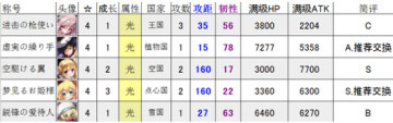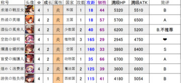 《梅露可物语》四星人物评价分析 来源: 飞翔小编 2014/7/31 9:09:06 浏览量:2602 梅露可物语,是一款画风精美的日系卡牌游戏,游戏中各大人气漫画角色荟萃,这里给大家带来四星人物的简要评价分析希望对大家选卡有帮助。评价标准:S:最优秀的卡,能进最强力的队伍A:优秀,能打公会B:一般,可以推图,不适合公会C:四星卡面,二星实力❤:使用新符文可以进入最强力队伍(需要配合,无配合则是无用卡)交换所的4星卡会标注是否推荐,但即使是推荐的卡,也要取决于你的自身情况(是否同系,是否养得起)。水系火系风系光系暗系