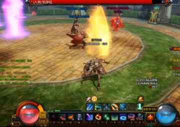 BOSS的攻击方式是放出3道会追踪的紫色火焰攻击,可以用冲刺躲过也可以跳跃躲过,此外BOSS如果放出一道火焰攻击时地上会留下如下图所示的喷发的火焰,这个BOSS会经常施放这些技能,地上会有许多的火焰,所以很需要走位。