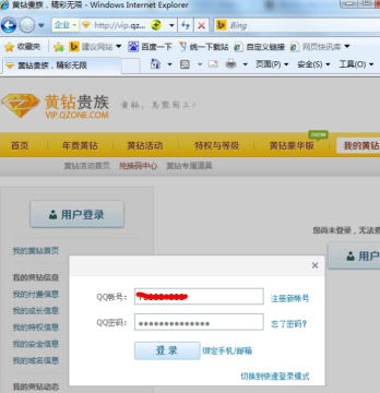 4.这时候是不是跳出一个黄钻登录页面呢?登录你的账号,如图所示