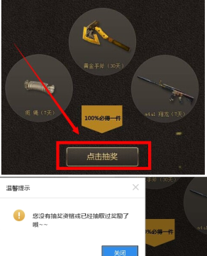 5.确定登录成功之后返回原来的预约页面,这时候点击“点击抽奖”按钮,会出现没有抽奖资格提示,如图所示