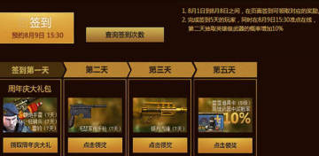 2. 完成签到5天的玩家,同时在8月9日15:30准点在线,第二天抽取英雄级武器的概率增加10%