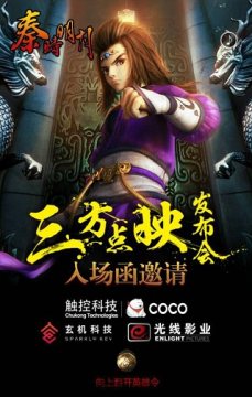 2014年8月2日晚,《秦时明月》手游大电影点映发布会将在沪隆重召开。由玄机科技(动漫方)、光线传媒(电影发行方)、触控科技(手游发行方)三界巨头联手启动。届时,国内众多资深媒体人、资深玩家都将参与其中,共同见证《秦时明月》泛娱乐战略、官方唯一授权《秦时明月》手游大电影版产品始终以及未来发展。