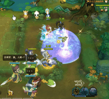 这时等待吕布到达关羽面前时,张飞也能攻击到吕布的情况下,丢下保护罩和鼓舞。所有攻击都得到加强,这个地方尽可能的拖住吕布,因为这个地方输出是最大的。吕布把关羽打跑时间也不多了,所以一定要在这里打跑吕布。如果小怪过多使用徐庶的技能清小怪。