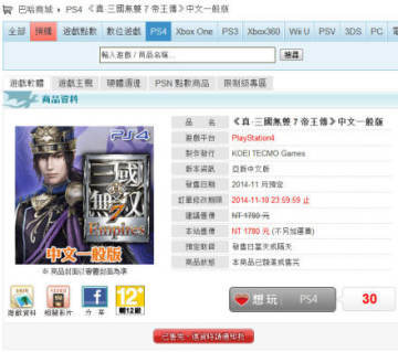《真三国无双7帝国》中文版11月登陆PS4和XBOX ONE 来源: 飞翔小编feichenpan 2014/8/5 20:52:48 浏览量:593 根据台湾巴哈姆特电玩商城的最新情报,《真三国无双7帝国》官方中文版将于2014年11月发售,登陆PS4,PS3和XBOX ONE平台。《真三国无双7帝国》追加了新可操作武将荀彧,在前作结婚系统上加入生子要素,孩子继承双亲能力,外貌会以双亲外观自动生成,并且包含高自由度征战和武将编辑系统,敬请期待。