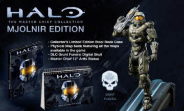 《光环 士官长收藏版》预计11月11日光棍节发售 来源: 飞翔小编 2014/8/7 21:21:16 浏览量:359 《光环 士官长收藏版(the Master Chief Collection)》预计2014年11月11日光棍节发售,独占登陆微软XBOX ONE主机平台,现今官方曝光了游戏限量版和Mjolnir版,其中将收录限量铁盒包装,实体地图册台历,所有《光环》版本里的地图都包含,此外还有12英寸高的士官长手办,野猪兽葬礼数字颅骨DLC等内容。