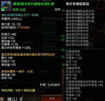 下面简单介绍一下衣服,帽子和耳环的属性进化